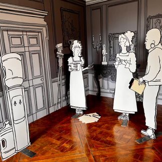 The Holburne Museum (known to Jane Austen as the Sydney Hotel and to Bridgerton fans as Lady Danbury's house) has an exhibition by Glasgow artist Mike Peter, "Old Ghosts". History as an Industry is represented by visitors to the museum, work for a sign painter who paints the marquee, a film test for a period piece pays homage to the movies filmed here and a half-buried roman road being dug up on the entry lawn. So fun to have new ideas running through these old buildings.
