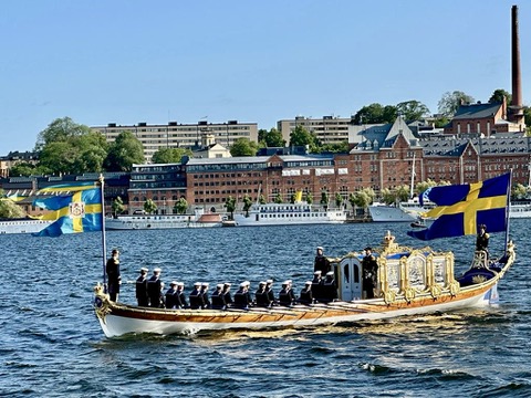 Big year for the King. Unbeknownst to us we happened upon the celebration of the 100 year celebration of Stockholm's city hall. To honor the occasion King Carl Gustav sailed past us on his royal barge "Vasaorden". Youssef is sure King Carl waved at him. King Carl is also celebrating 50 years of ruling in the house of Bernadotte and 500 years as a Swedish independent nation.